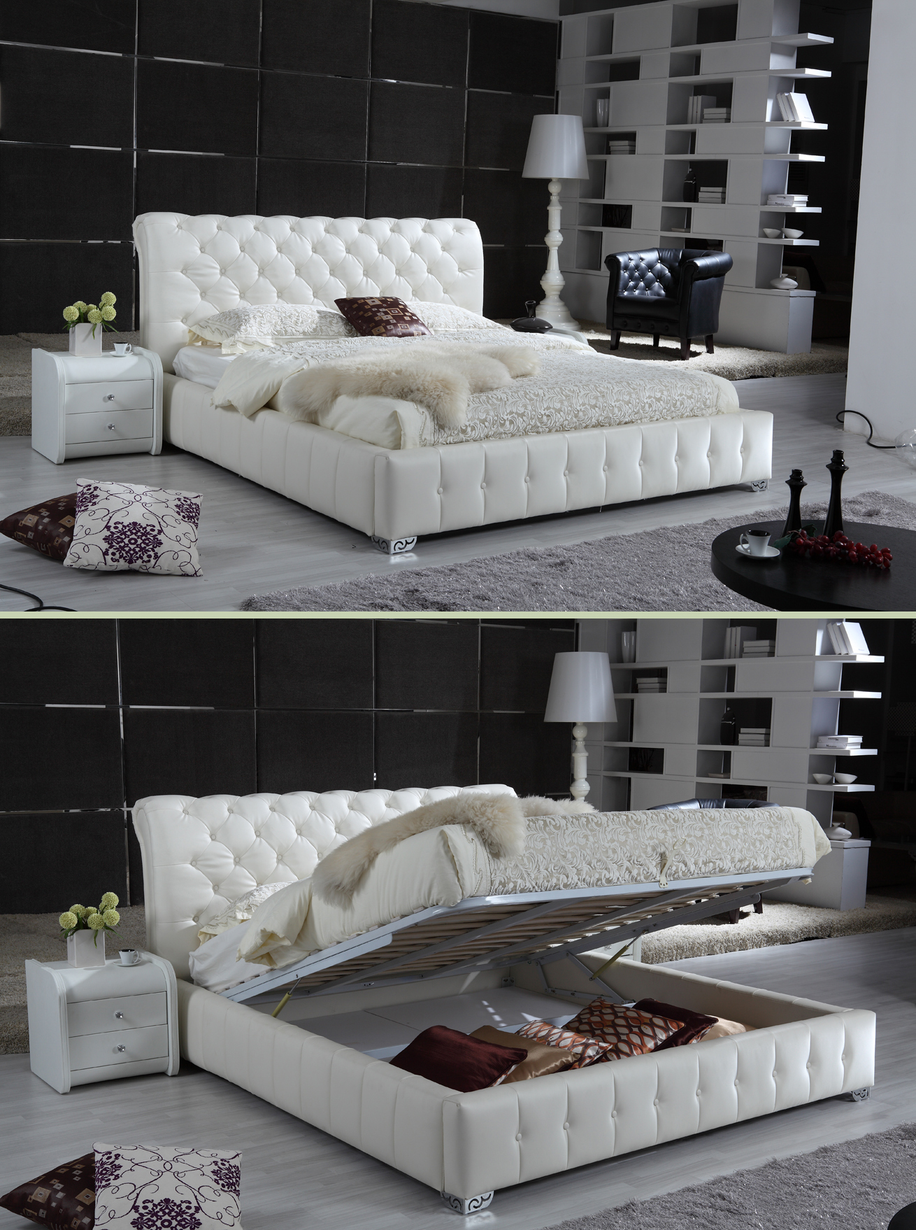 Feature: Gas-Lift Bed Colour: Black, White Size: Double, Queen, King -
