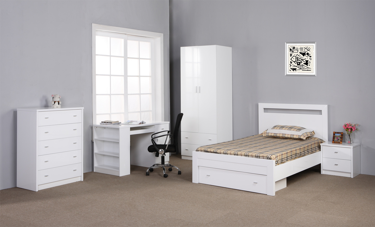 Feature: Solid Timber Bedroom Suite Colour: White Size: King Single -