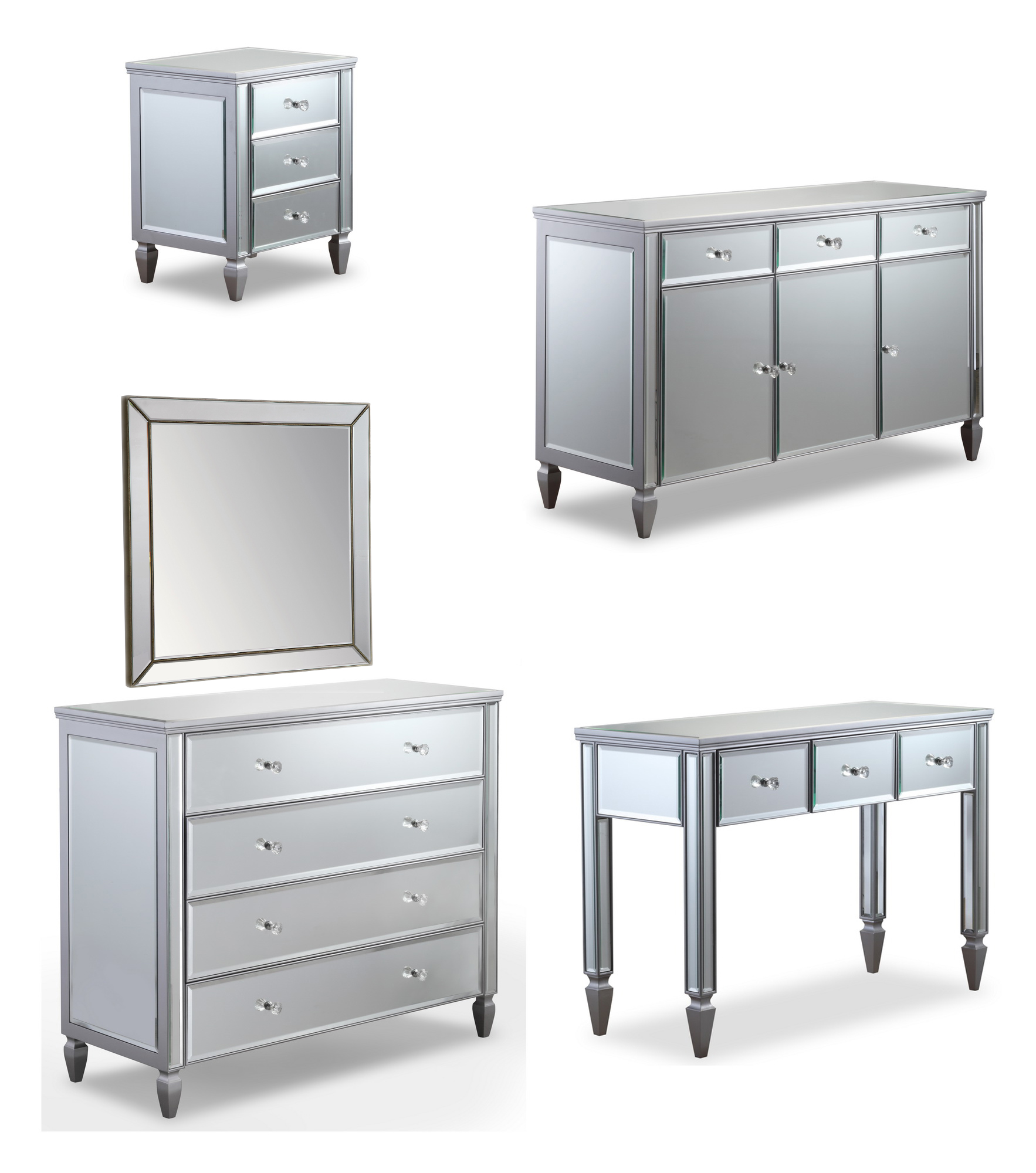 Feature: Mirror Item, Silver Edge, Crystal Handles Colour: Silver -