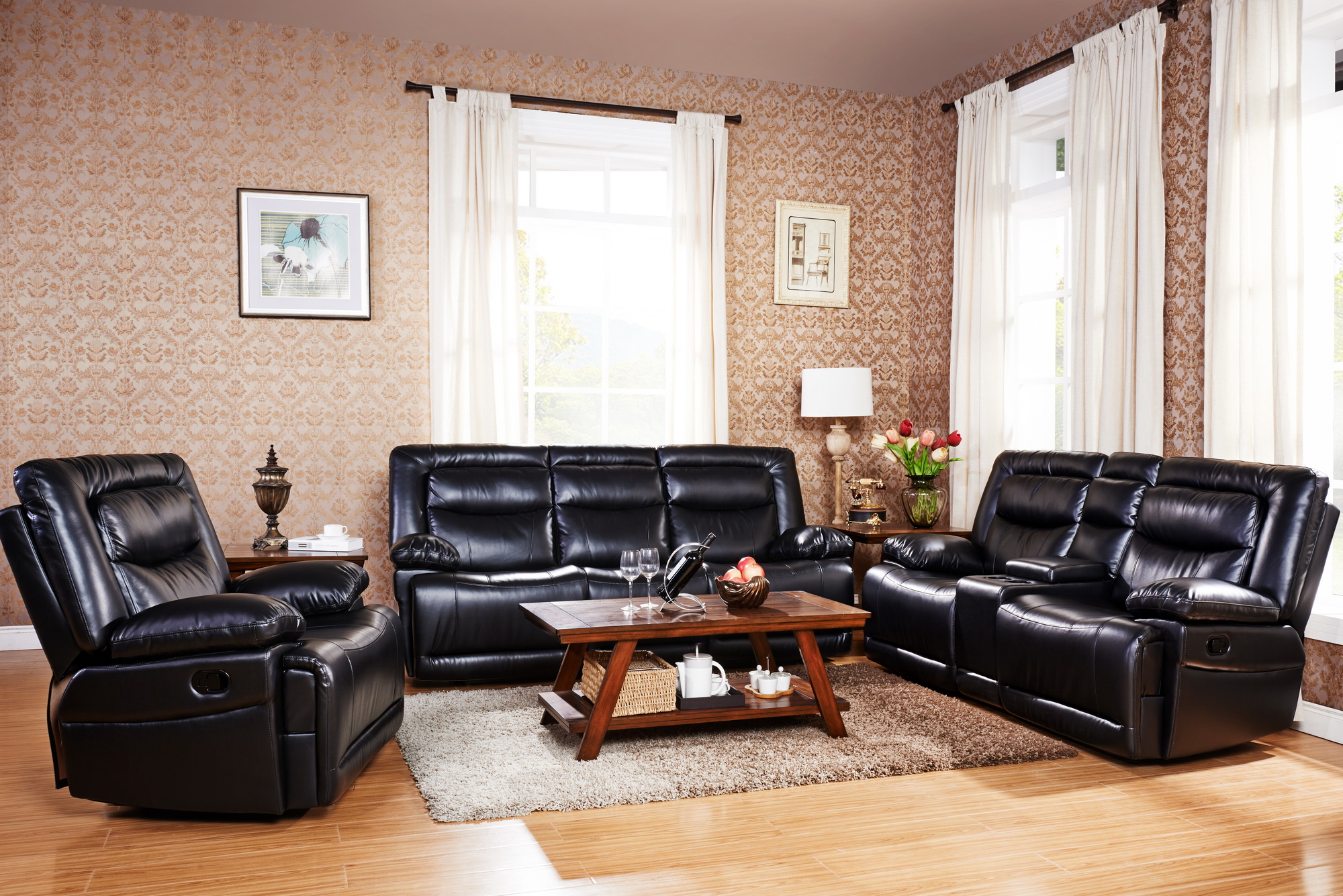 Feature: Bonded Leather Recliner Set Colour: Black -